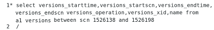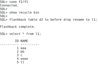 ![]() Step 2 : Enable the flashback ![]() ![]() Step 3 : Stop the flashback ![]() Two methods to take flashback: 1. SCN (System change number) 2. Timestamp Step 1 : To check current scn number ![]() Step 2 : Identify timestamp from scn number ![]() Step 3 : Identify scn number from timestamp ![]() Flashback query:Step 1 : Connect to the user then create a table ![]() ![]() Step 2 : Insert the values to a1 table ![]() Step 3 : Connect to Sys user to check current scn number ![]() Step 4 : To view data in a1 table ![]() Step 5 : Insert the values to a1 table ![]() Step 6 : To check current scn number ![]() Step 7 : Delete all the values from a1 table ![]() Step 8 : To view old values by using scn method of flashback query ![]() Table recreate as different name by using scn number:Flashback version query:Pseudo columns :Step 1 : To view flashback versions query between two scn numbers Flashback transaction query:In 12c :Step 1 : To view deleted values from flashback transaction query ![]() Flashback Table :Step 1 : To create table with f1 user![]() Step 2 : Insert the values to d2 table ![]() Step 3 : To check current scn number ![]() Step 4 : Delete the values in d2 table with f1 user ![]() Step 5 : Flashback table by using scn method ![]() Flashback drop: Step 1 : Drop the table ![]() Step 2 : Create a table ![]() Step 3 : Connect to f1 user then flashback the dropped table ![]() Flashback Database : Step 1 : To enable the flashback ![]() Step 2 : To check current scn number ![]() Step 3 : Connect to user check how many tables in the user ![]() Step 4 : Drop the table in f1 user ![]() Step 5: Connect to sys user & close the database ![]() Step 6 : Start the database in mount stage ![]() Step 7 : Flashback the database by using scn number ![]() Step 8 : To View Table ![]() « Previous Next Topic » (Oracle Database - Flash back) |