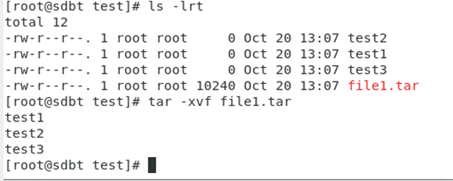 command used to manage that list. MIN HOUR DOM MON DOW CMD Field Description Allowed Value MIN Minute field 0 to 59 HOUR Hour field 0 to 23 DOM Day of Month 1-31 MON Month field 1-12 DOW Day Of Week 0-6 CMD Command Any command to be executed.To find the list of jobs created: [root@sdbt ~]# crontab -l no crontab for root [root@sdbt ~]#To create new job: [root@sdbt ~]# crontab -e no crontab for root - using an empty one crontab: installing new crontab */1 * * * * touch testfilecreation ~ ~ ~ ~ -- INSERT -- [root@sdbt ~]# ls -lrt total 2936 drwxrwxr-x. 6 root root 4096 Sep 4 2021 pgbadger-11.6 -rw-------. 1 root root 2222 Mar 1 2022 anaconda-ks.cfg -rw-r--r--. 1 root root 2253 Mar 1 2022 initial-setup-ks.cfg drwxr-xr-x. 2 root root 6 Mar 1 2022 Templates drwxr-xr-x. 2 root root 6 Mar 1 2022 Downloads drwxr-xr-x. 2 root root 6 Mar 1 2022 Desktop drwxr-xr-x. 2 root root 6 Mar 1 2022 Videos drwxr-xr-x. 2 root root 6 Mar 1 2022 Public drwxr-xr-x. 2 root root 6 Mar 1 2022 Music drwxr-xr-x. 2 root root 6 Mar 1 2022 Documents drwxr-xr-x. 5 root root 39 Apr 10 2023 perl5 -rw-r--r--. 1 root root 2974369 Aug 31 15:09 v11.6.tar.gz drwxr-xr-x. 4 root root 53 Sep 21 12:20 sdbt dr-xr-xr-x. 2 root root 46 Sep 22 12:10 filecomm drwxr-xr-x. 3 root root 34 Oct 20 14:44 test -rw-r--r--. 1 root oinstall 0 Oct 25 12:18 test_file drwxr-xr-x. 3 root root 4096 Oct 25 12:18 Pictures drwxr-xr-x. 3 root root 40 Oct 25 15:42 tesdb -rw-------. 1 root root 482 Oct 25 16:47 nohup.outLIST JOBS: [root@sdbt ~]# crontab -l */1 * * * * touch testfilecreation FILE CREATED: [root@sdbt ~]# ls -lrt total 2936 drwxrwxr-x. 6 root root 4096 Sep 4 2021 pgbadger-11.6 -rw-------. 1 root root 2222 Mar 1 2022 anaconda-ks.cfg -rw-r--r--. 1 root root 2253 Mar 1 2022 initial-setup-ks.cfg drwxr-xr-x. 2 root root 6 Mar 1 2022 Templates drwxr-xr-x. 2 root root 6 Mar 1 2022 Downloads drwxr-xr-x. 2 root root 6 Mar 1 2022 Desktop drwxr-xr-x. 2 root root 6 Mar 1 2022 Videos drwxr-xr-x. 2 root root 6 Mar 1 2022 Public drwxr-xr-x. 2 root root 6 Mar 1 2022 Music drwxr-xr-x. 2 root root 6 Mar 1 2022 Documents drwxr-xr-x. 5 root root 39 Apr 10 2023 perl5 -rw-r--r--. 1 root root 2974369 Aug 31 15:09 v11.6.tar.gz drwxr-xr-x. 4 root root 53 Sep 21 12:20 sdbt dr-xr-xr-x. 2 root root 46 Sep 22 12:10 filecomm drwxr-xr-x. 3 root root 34 Oct 20 14:44 test -rw-r--r--. 1 root oinstall 0 Oct 25 12:18 test_file drwxr-xr-x. 3 root root 4096 Oct 25 12:18 Pictures drwxr-xr-x. 3 root root 40 Oct 25 15:42 tesdb -rw-------. 1 root root 482 Oct 25 16:47 nohup.out -rw-r--r--. 1 root root 0 Oct 26 17:04 testfilecreation [root@sdbt ~]# TO REMOVE CRON TAB: [root@sdbt ~]# crontab -r [root@sdbt ~]# crontab -l no crontab for root46. SCP scp stands for Secure Copy Protocol, and it is a command-line tool in Linux and Unix-like operating